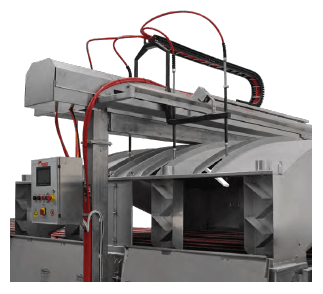 Automated washing system inside the cabin through a hydraulic unit that activates high-pressure rotating heads and low-pressure nozzles.
